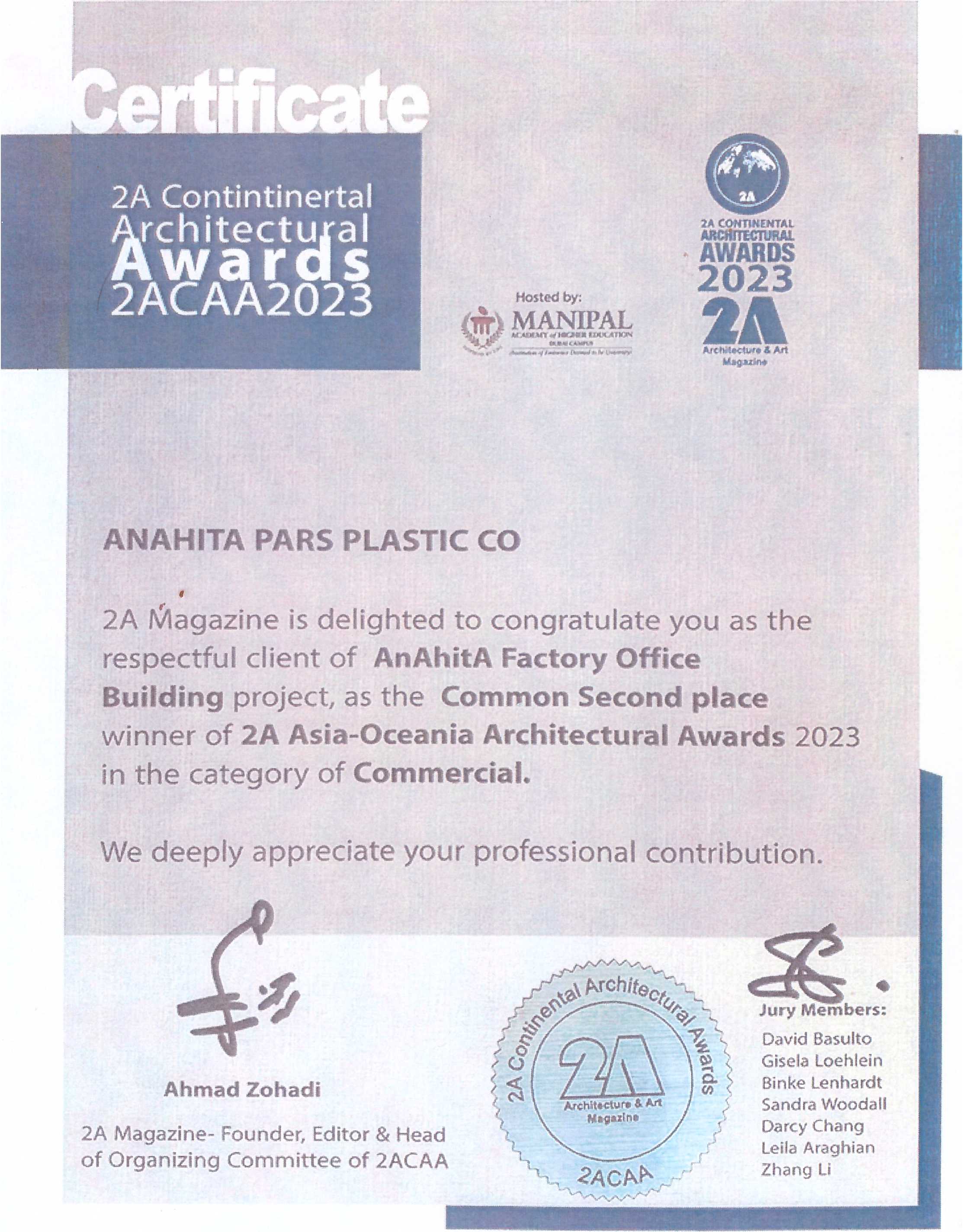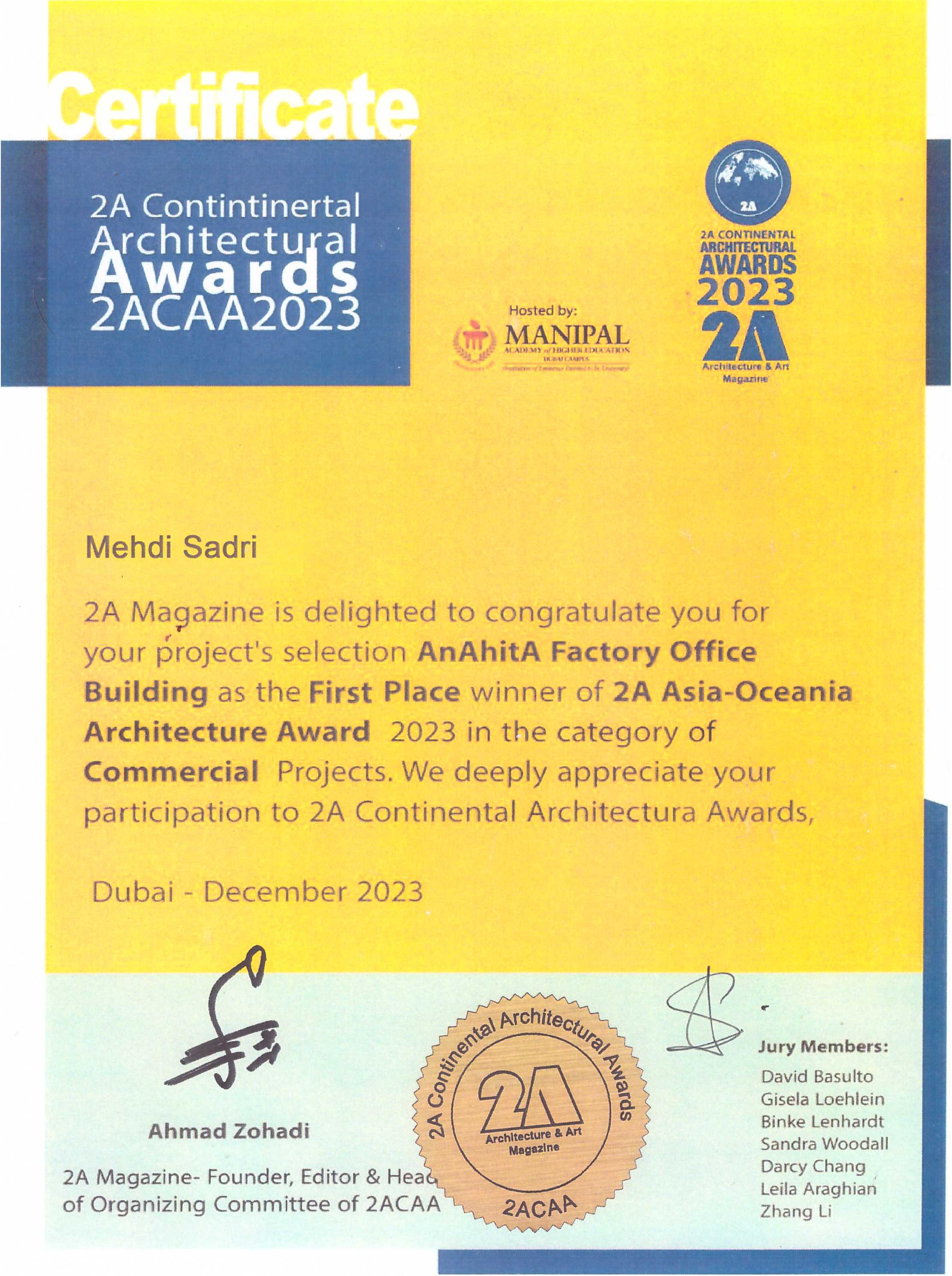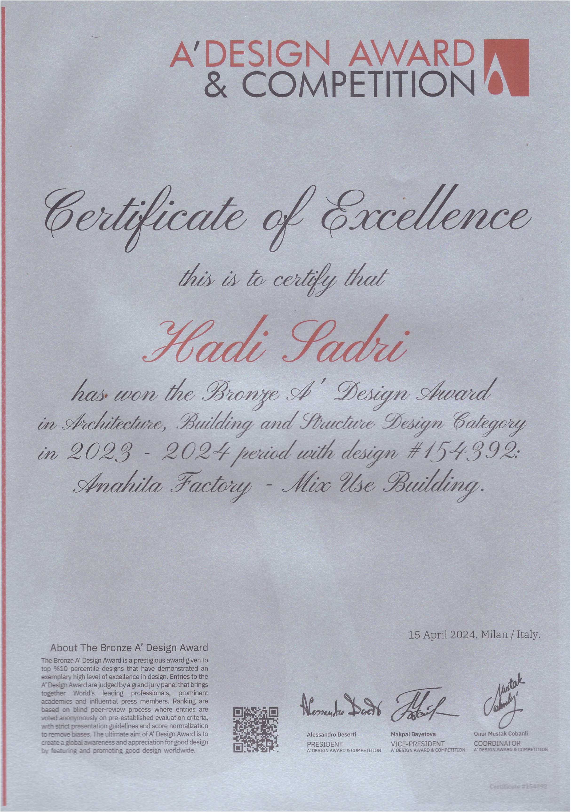 مقام سوم مسابقات جهانی A'Design ایتالیا در بخش ساختمان های ساخته شده